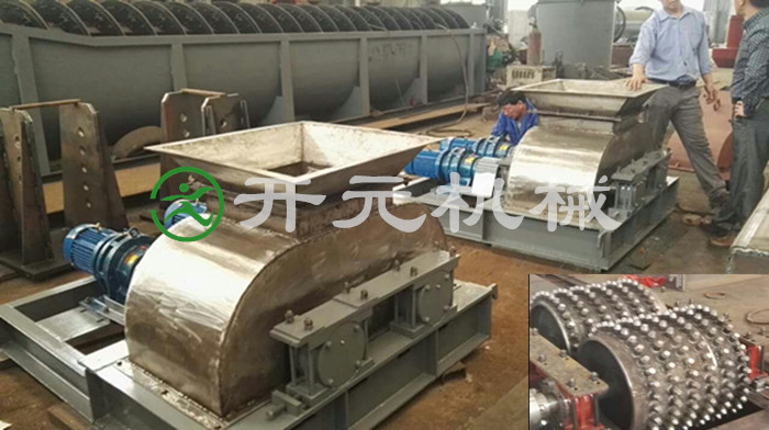 3、工作原理:機器的驅動機構,分別采用單個或兩個電動機,皮帶傳動驅動輥輪,按照相對方向旋轉籍以破碎物料。工作時物料從進料口通過輥輪,由輥輪輥碾擠壓而破碎,破碎后的成品從底架下排出。